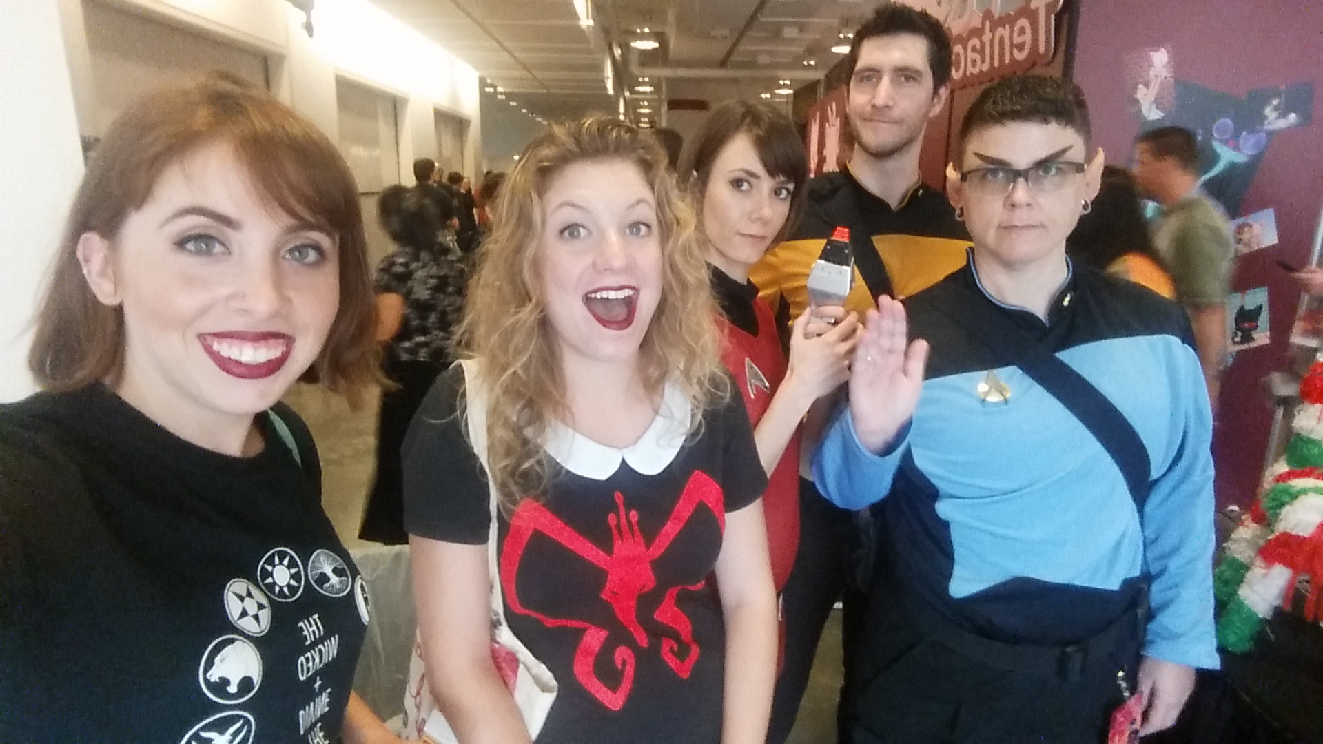 At 10pm, I was a panelist at Con Culture & the Changing Face of Fandom. As we waited in the hall before the panel, a man left the room from the previous panel yelling at the people in the room and then yelling at the line of people in the hallway. It was very strange. We found out later that the panel he had left was “Sexuality and Diversity in Comics” and that he had interrupted someone else’s comment to say that panel discussions would never change anything ever and that people should make their own characters instead of trying to make current characters better. He was a jerk. Pro-tip: If you enjoy telling others that their opinions don’t matter and have a problem with discussing queerness in comic books, maybe don’t attend a panel about diversity. Or even better, don’t attend the convention. Stay home and yell at yourself in the mirror. It might be more productive.